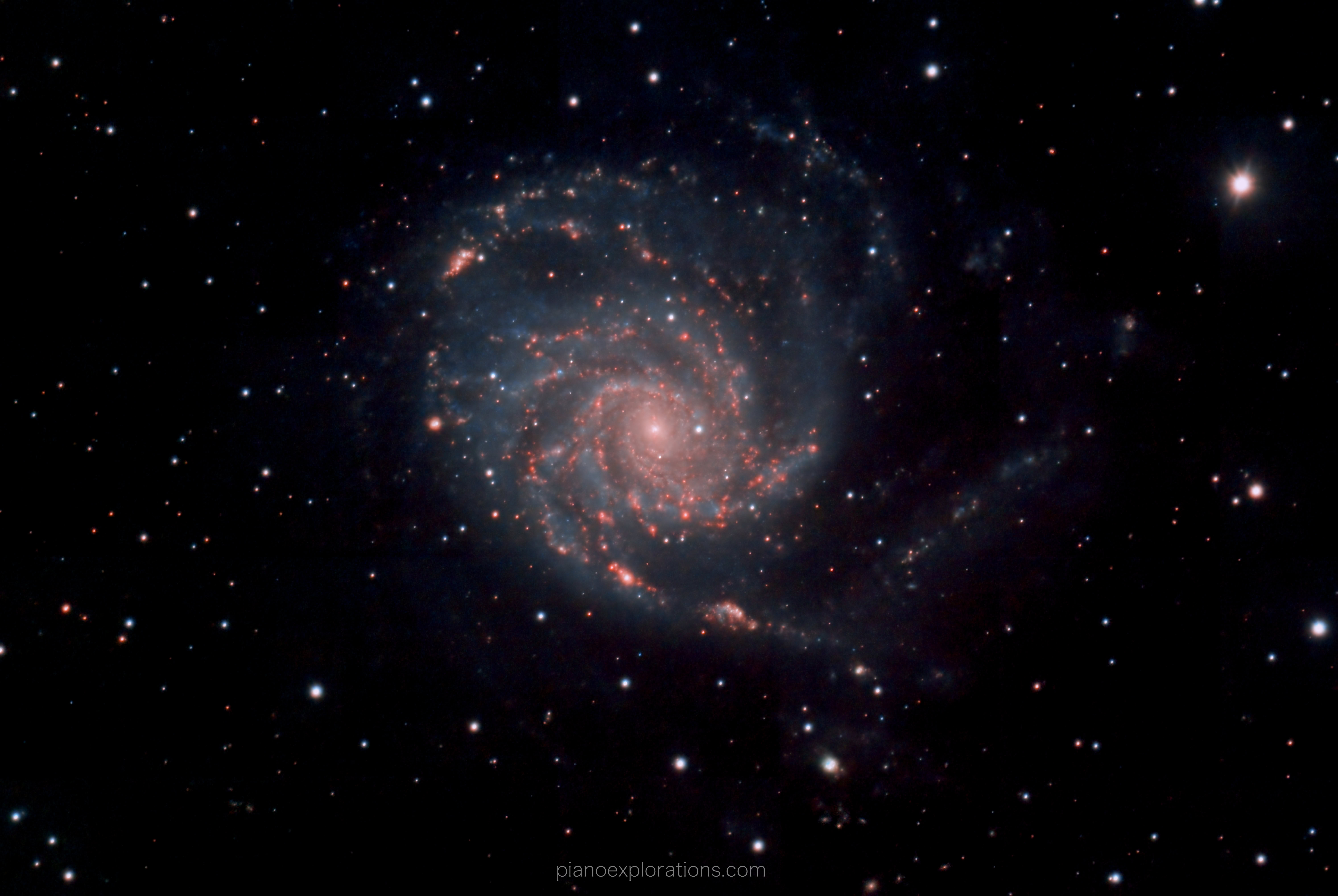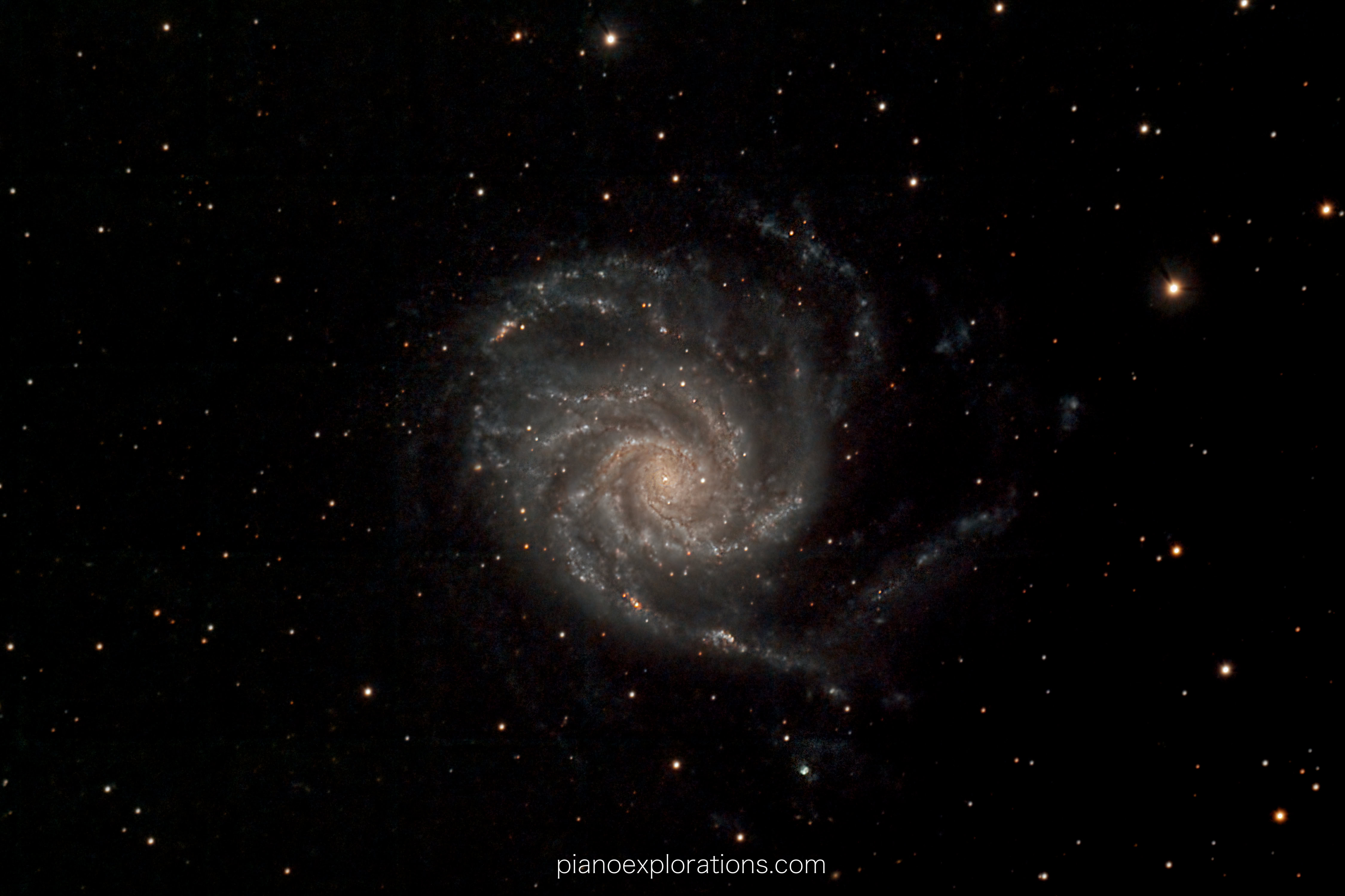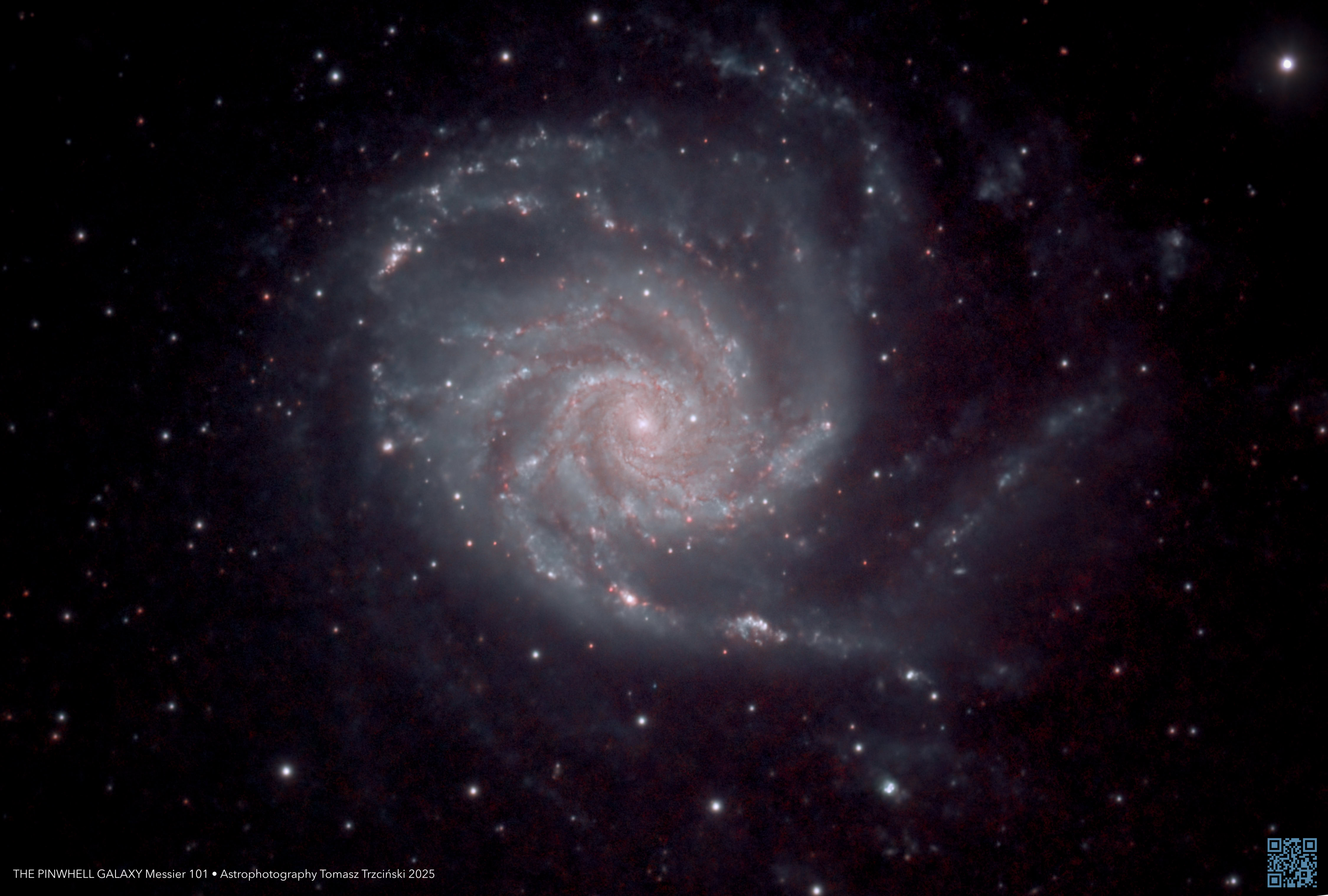 Razem z innymi słabszymi galaktykami M101 tworzy grupę galaktyk M101. Oddziaływanie pobliskich galaktyk zaburzyło kształt M101 i spowodowało rozciągnięcie w przestrzeni chmur gazu. Przejście innej galaktyki, najprawdopodobniej NGC 5474, w pobliżu M101 około 250 milionów lat temu przyczyniło się także do wzrostu aktywności gwiazdotwórczej, dzięki której północno-wschodnie ramię galaktyki zawiera więcej młodych, błękitnych gwiazd. W Polsce widoczna przez cały rok (obiekt okołobiegunowy)