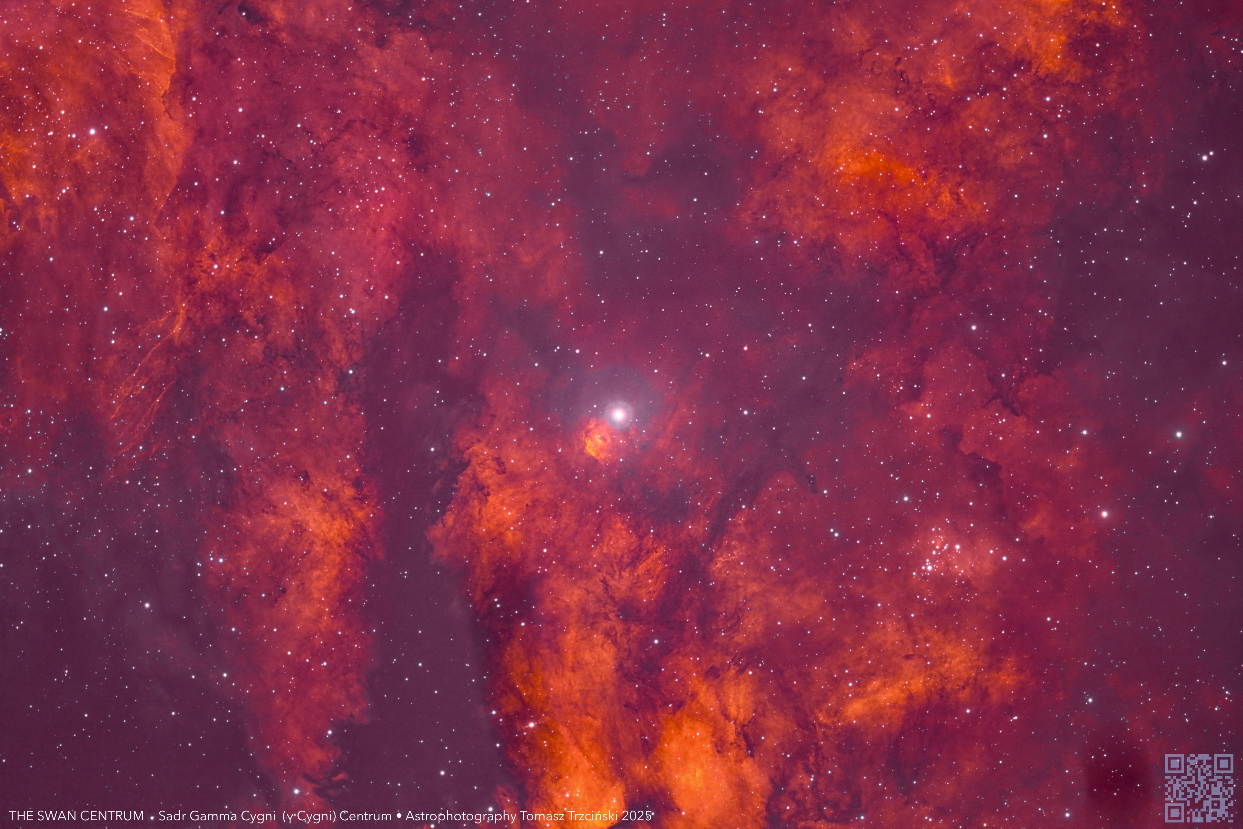 Chociaż Gamma Cyg jest w trakcie umierania, po zaprzestaniu syntezy wodoru w swoim głębokim jądrze, nie jest możliwe ustalenie, w jakim stanie znajduje się gwiazda, czy będzie się nagrzewać lub ochładzać na swojej powierzchni, czy też nastąpi fuzja helu, czy też już nastąpiła, co trwa dłużej niż jakikolwiek człowiek zobaczy. Chociaż Sadr nie jest oczywiście zmienną, gwiazda wydaje się pulsować w złożony sposób z okresem 74 dni. W odległości nieco ponad dwóch minut łuku znajduje się "towarzyszka" o jasności dziewiątej magnitudo, sama będąca gwiazdą podwójną, Gamma Cyg BC, której trzeci człon znajduje się w odległości 41 sekund łuku. Jedyny związek jest jednak w nazwie, ponieważ BC porusza się względem Sadra właściwego, aby nie być niczym więcej niż kolejną zbieżnością linii widzenia. (Podziękowania dla Deana Moberga za wskazanie mi tej gwiazdy).”